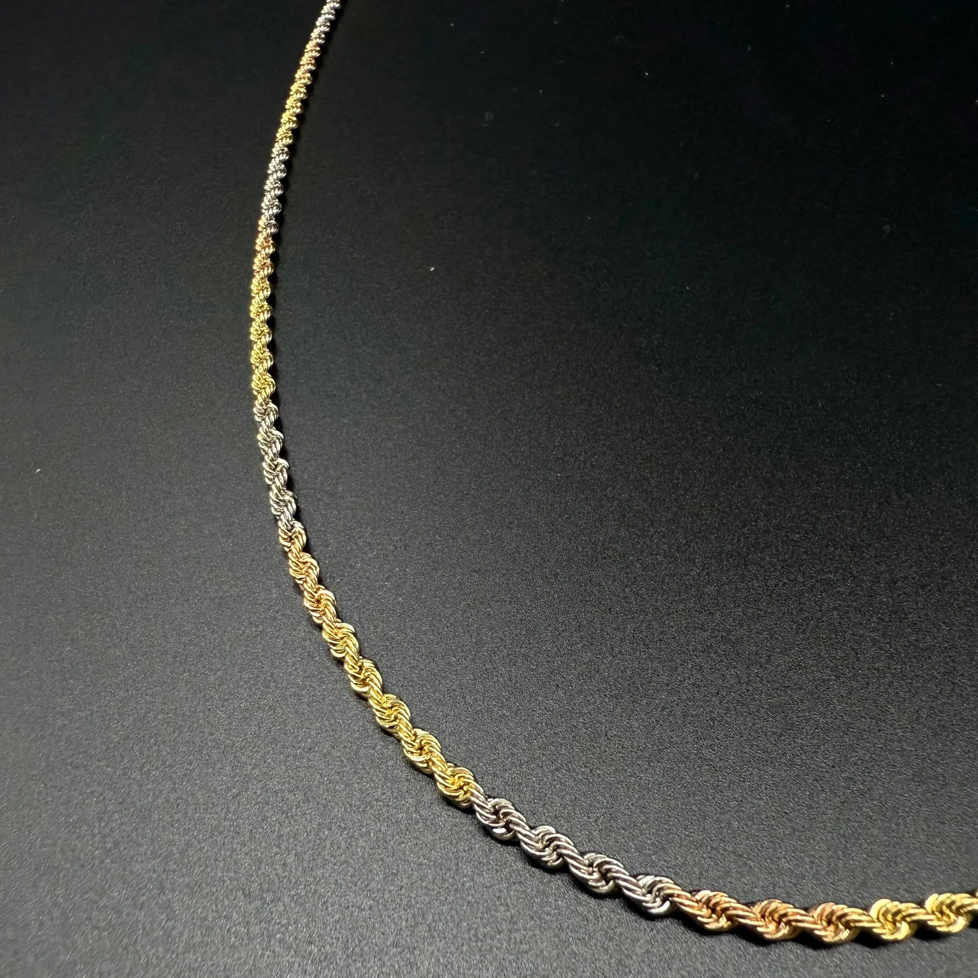 Cadena Tricolor Torzal de Oro 14K – 27.5 cm | Joyería Celina